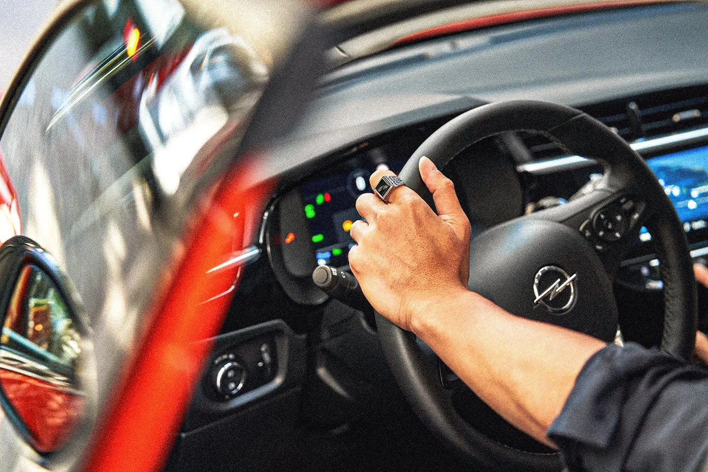 Opel cars in urban environments.Stylish and Vibrant: Highlight the sleek designs and vibrant colors of Opel vehicles to appeal to
